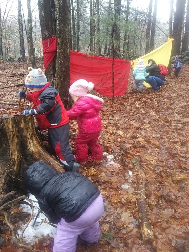 Our classroom values the importance of spending time outside immersed in nature. In order to promote physical development, our teachers plan games and activities outside that allow for whole body movement, as well as allowing time for children to explore and develop curiosity, all while investigating the world around them.