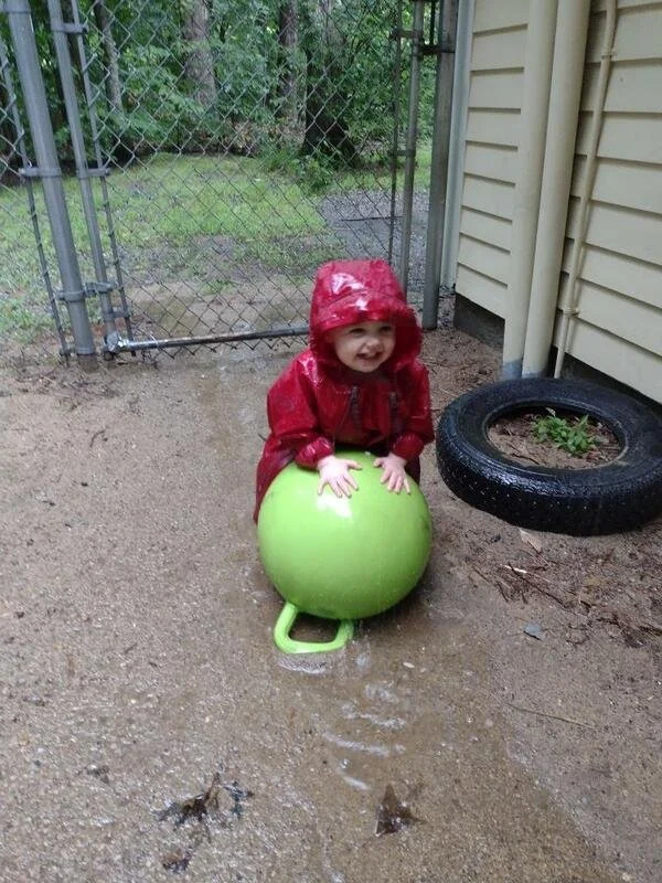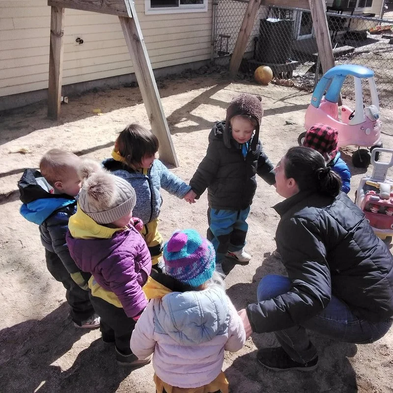 Spending time outside immersed in nature is important to our classroom. We encourage gross motor skills by teaching and supporting children as they climb the tire structure and the slides and blow bubbles as children chase them. Children make music outside, explore the garden and dig holes in the sand while they practice filling and dumping buckets.